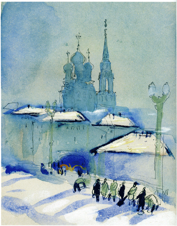 ![]() Вид на Замоскворечье с Кремлевской стены Литография Ф.Бенуа и Обрена по рисун ку Д.С. Индейцева, 1850 гг. | ![]() Реконструкция Воскресенской улицы в XVII в., рисунок Кудрявцева | ![]() © художник Илья Яценко |
