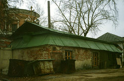 ![]() Каретный сарай на терри тории храма, который был освящен под храм прп. Иова Почаевского сер. 1990-х гг. | ![]() Храм прп. Иова Почаевского, 2006 г. | ![]() Пасхальный благовест на Кадашевской звоннице, 2004 г. |